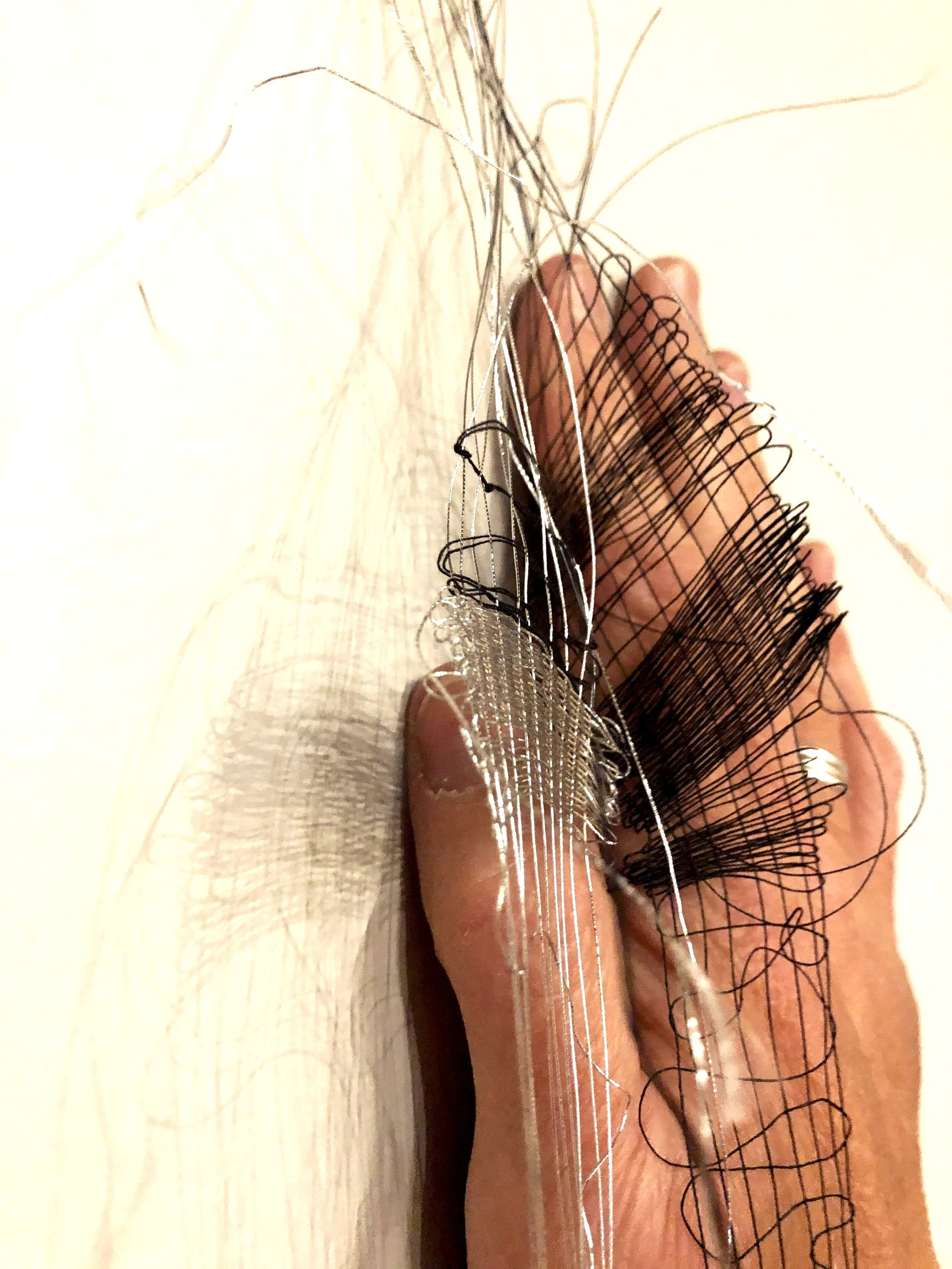 When we move in, around, through space, and each other with a human scale peg-loom adding architecture, we weave and unweave our actions into a textile; a memory remnant. Throughout this durational performance, viewers are invited to become part of the experience.
